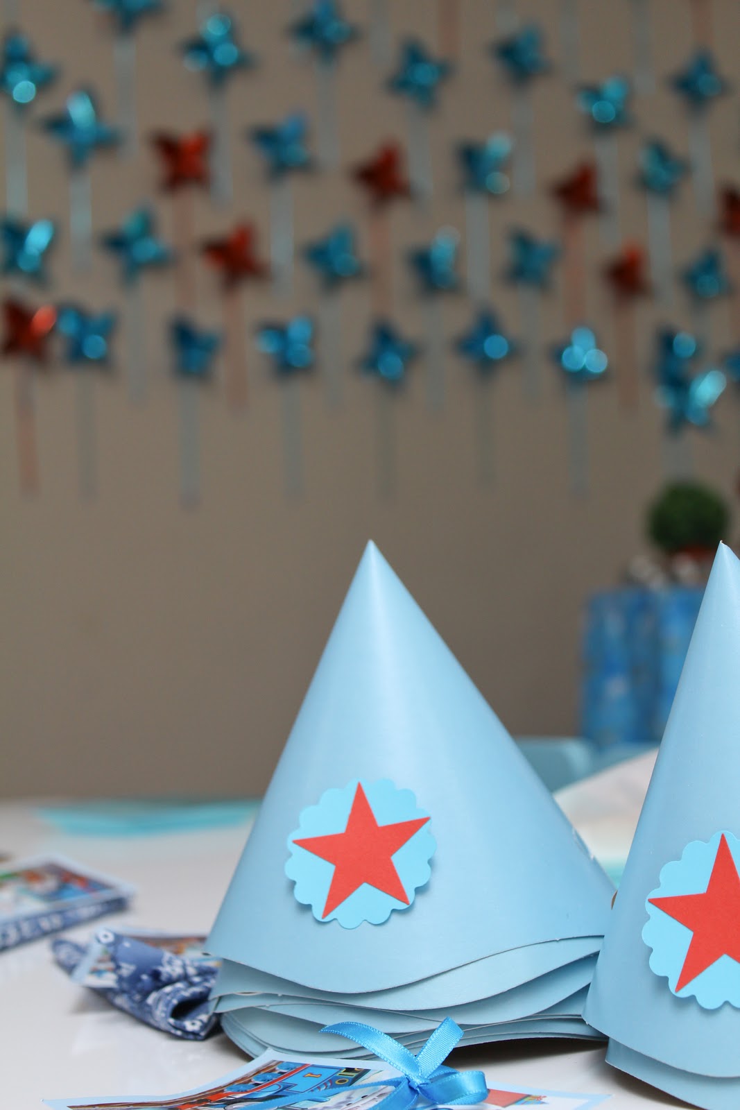 - use cataventos nas cores azul e vermelho; eles são uma divertida alusão aos moinhos de vento da paisagem do Thomas and friends